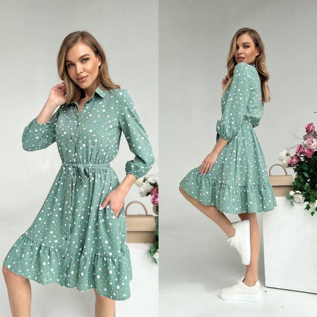 Плаття-сорочка в горошок на ґудзиках із поясом у комплекті Розміри: 42, 44, 46, 48