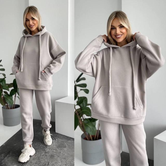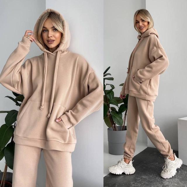 - 42-44: Кофта: ОГ — 126 см, ОТ — 122 см, довжина — 70 см Штани: ОТ — 68/88 см (гумка), ОС — 100 см, довжина — 102 см