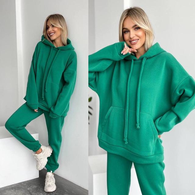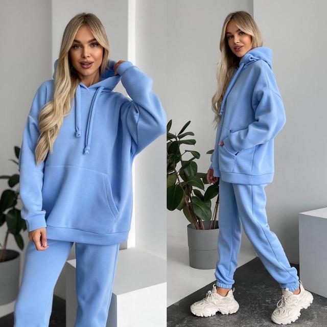 - 54-56: Кофта: ОГ — 150 см, ОТ — 146 см, довжина — 76 см Штани: ОТ — 86/106 см (гумка), ОС — 130 см, довжина — 108 см